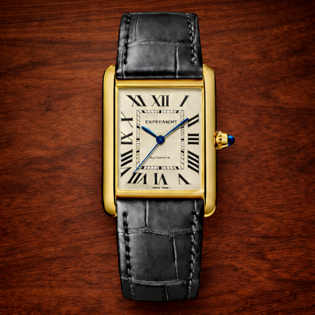 La géométrie de son boîtier rectangulaire et la finesse de son cadran rappellent les lignes emblématiques de l’horlogerie classique. Ce modèle exprime une sophistication discrète, où l’équilibre des proportions devient l’expression d’un style intemporel.